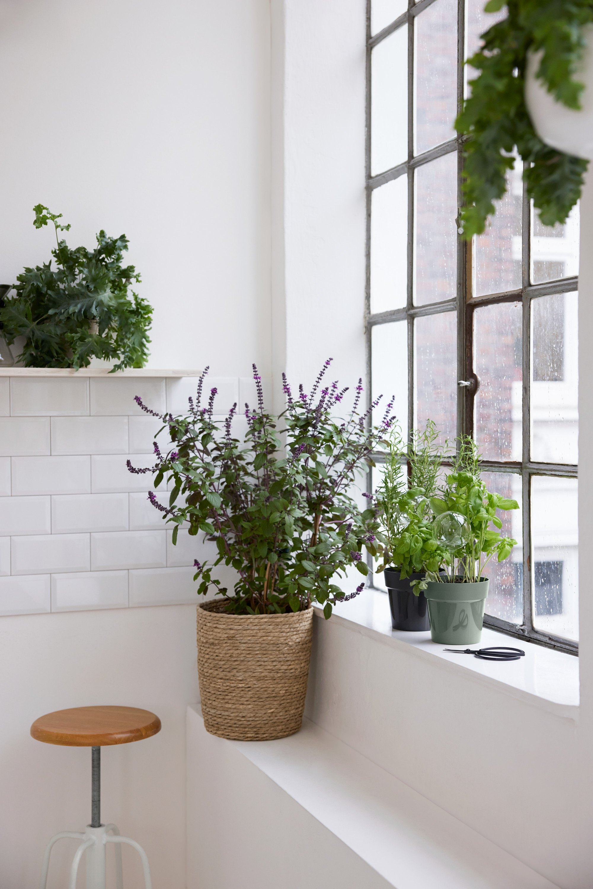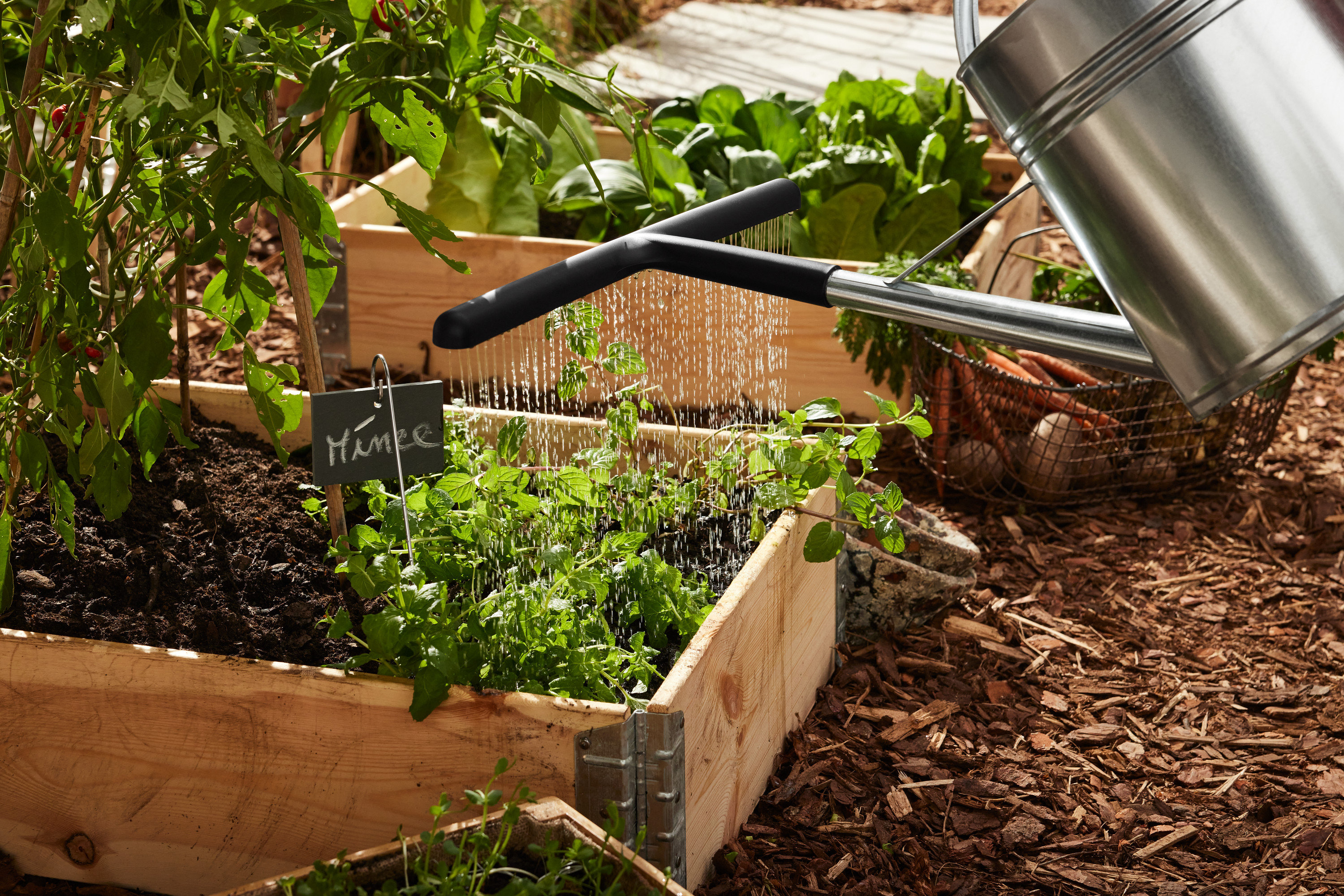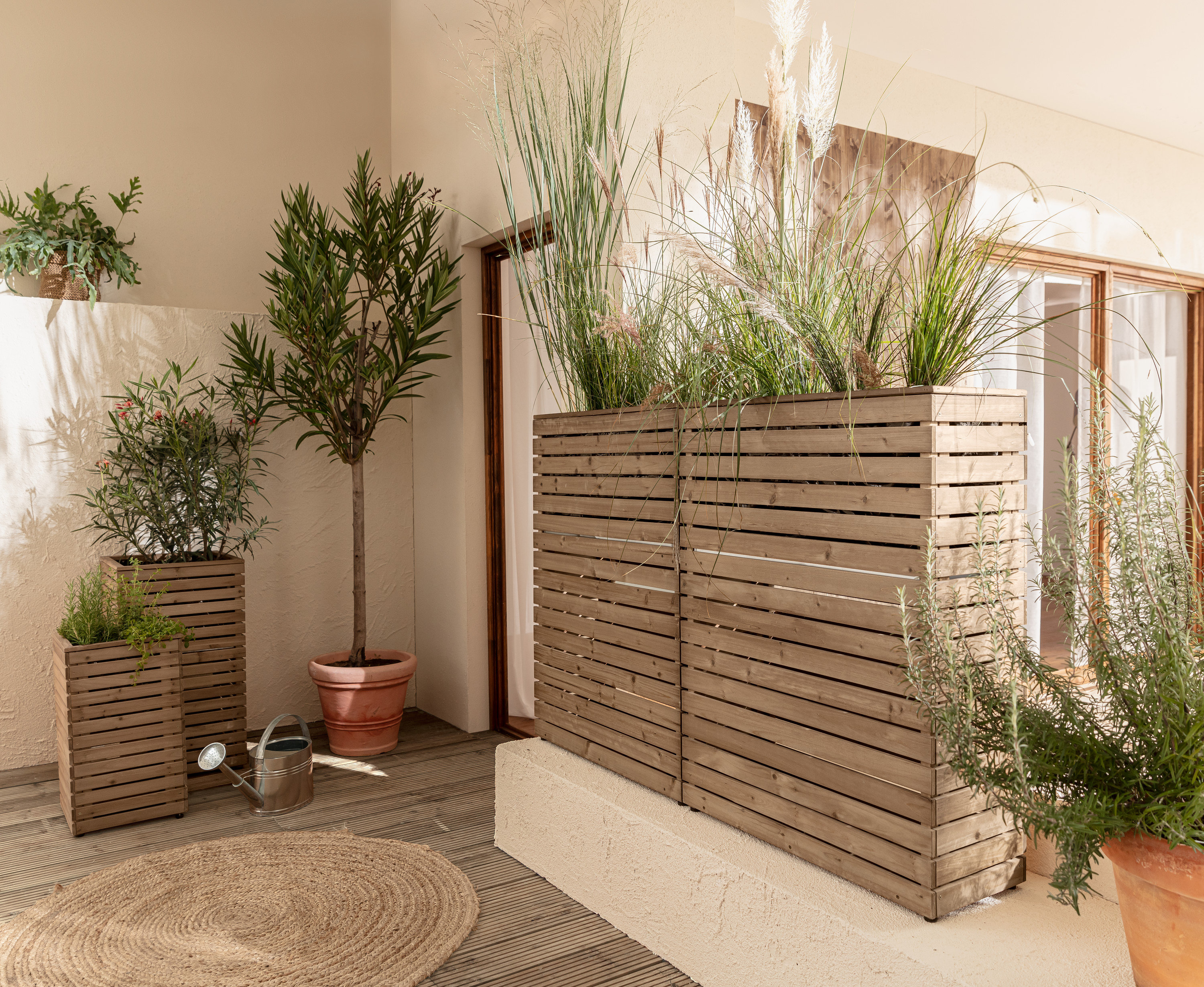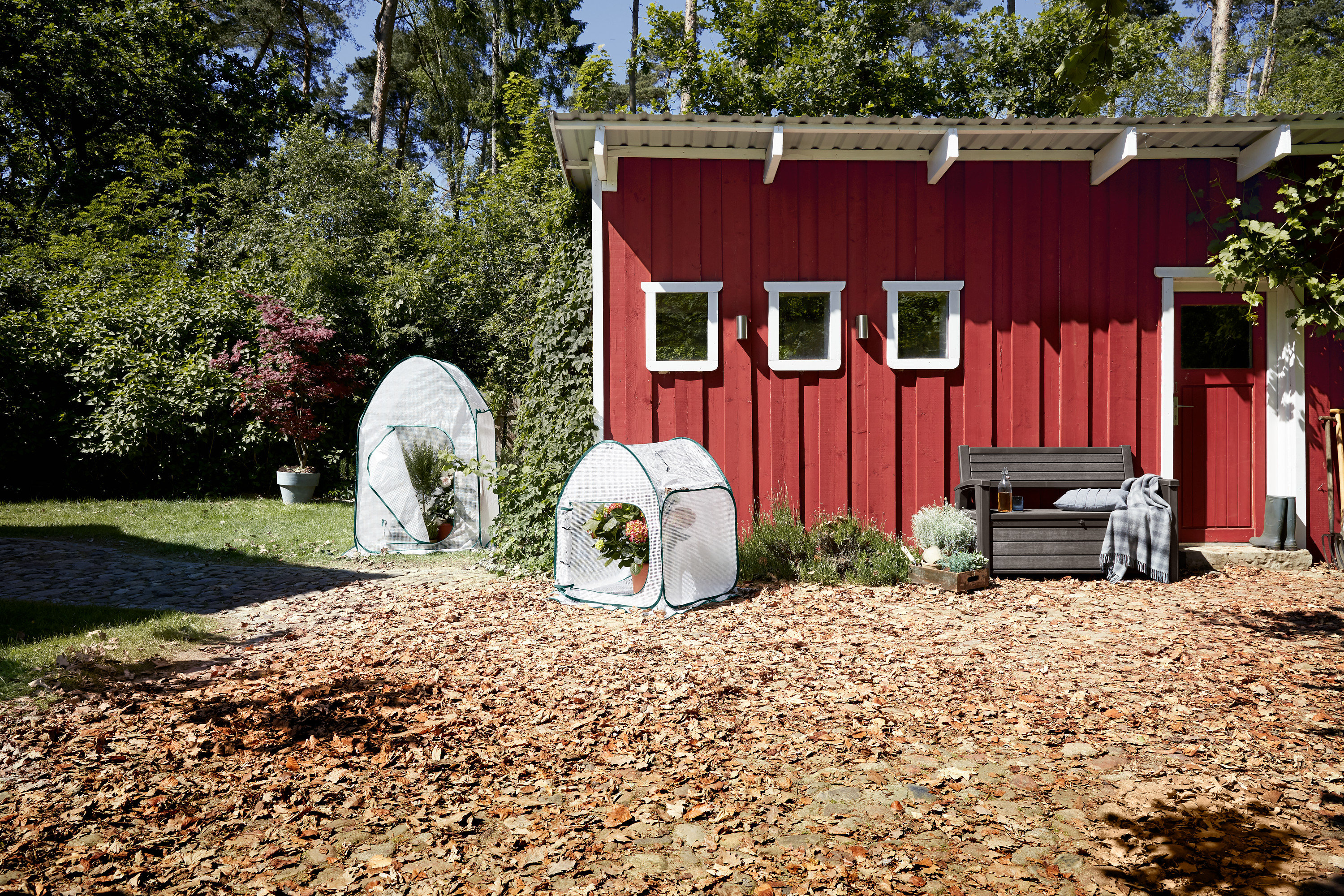 Kombinieren Sie zum Beispiel dicht wachsende Rankpflanzen in grossen Bodenkübeln mit einer Vielfalt an bunten Blumen in Balkonhängetöpfen oder trendigen Pflanztaschen. Oder nutzen Sie eine Blumentreppe, auf der Sie unterschiedliche Pflänzchen arrangieren. So entsteht ein besonders üppiger, lebhafter Minigarten. Mithilfe praktischer Hochbeete und kleiner Gewächshäuser können Sie ausserdem aromatische Kräuter und Beeren aus eigenem Anbau geniessen.