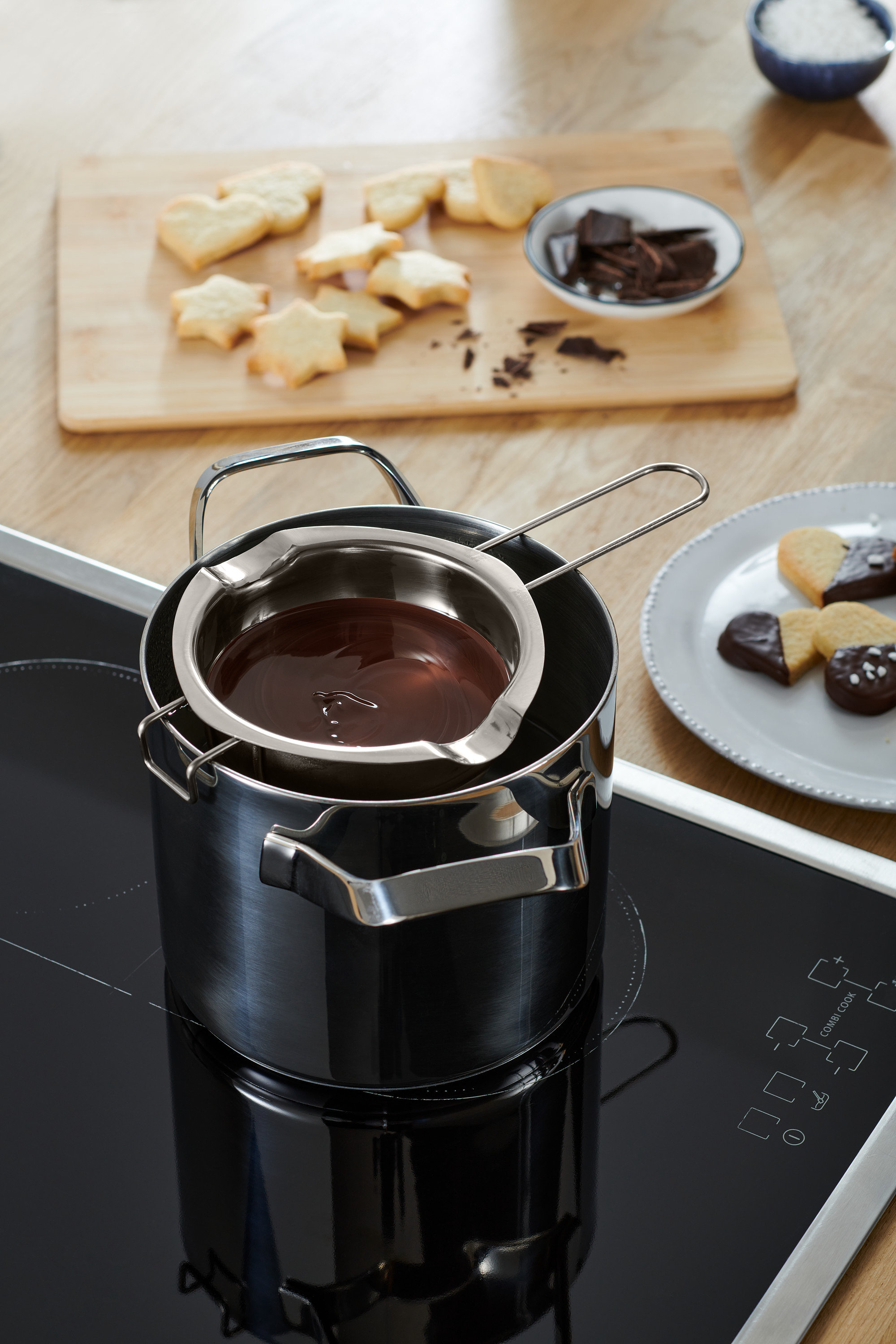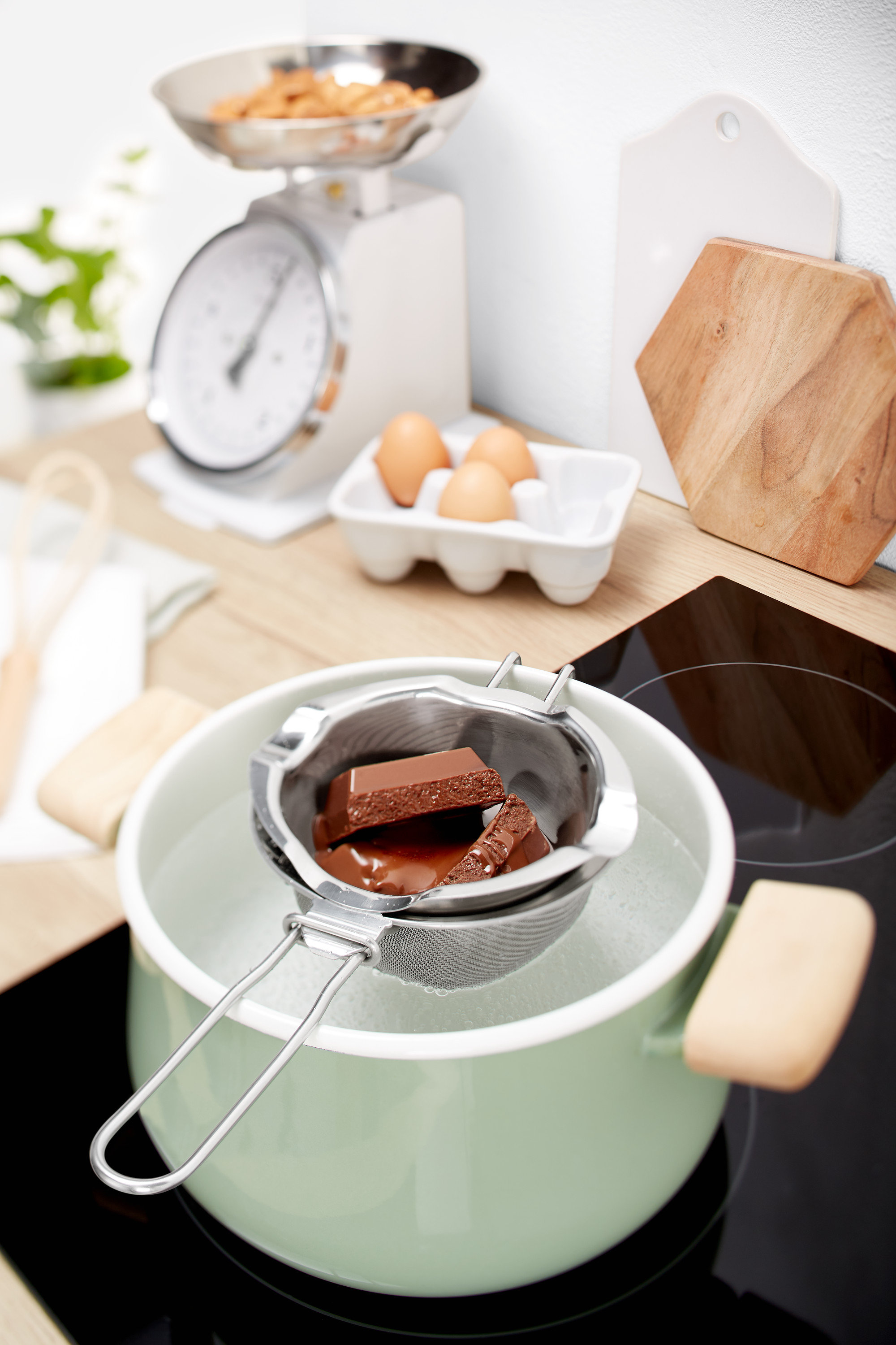 Schlagkessel Der Schlagkessel – am besten aus Edelstahl – kann dank seines abgerundeten Bodens perfekt und ohne abzurutschen auf einen Topf aufgesetzt werden. So eignet er sich bestens für Wasserbäder, ob kalt oder heiss. Profis verwenden gerne auch die kostspielige Variante aus Kupfer. Kupfergeschirr leitet die Hitze besonders gut und ist in jeder guten Patisserie zu finden.