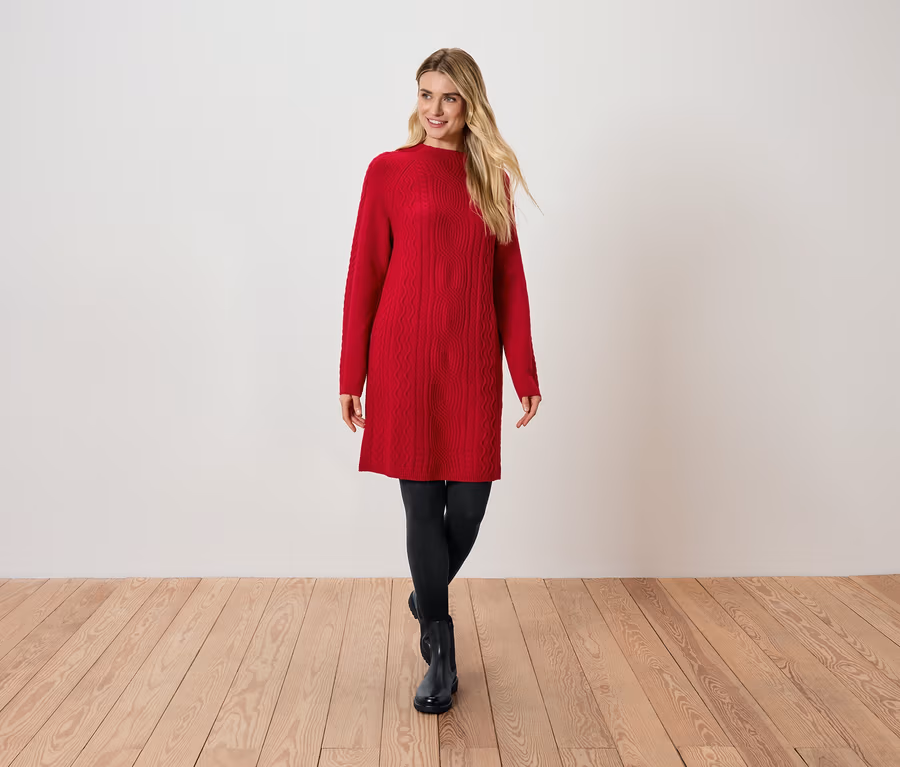 Strickkleid mit Zopfmuster, rot