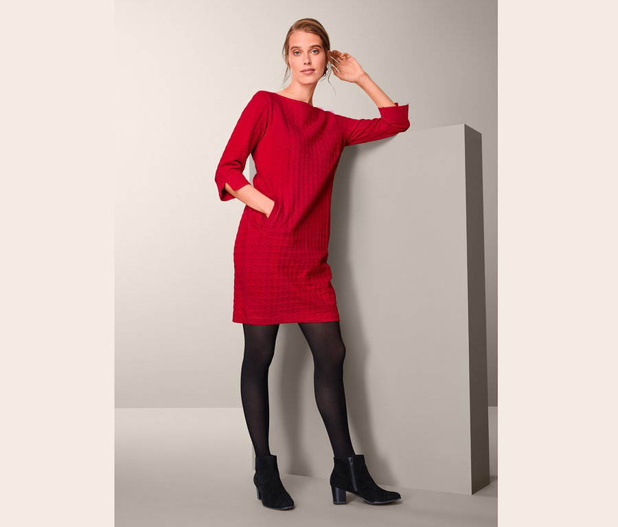 - Bequemes Kleid in strukturierter und elastischer Qualität mit Baumwollanteil