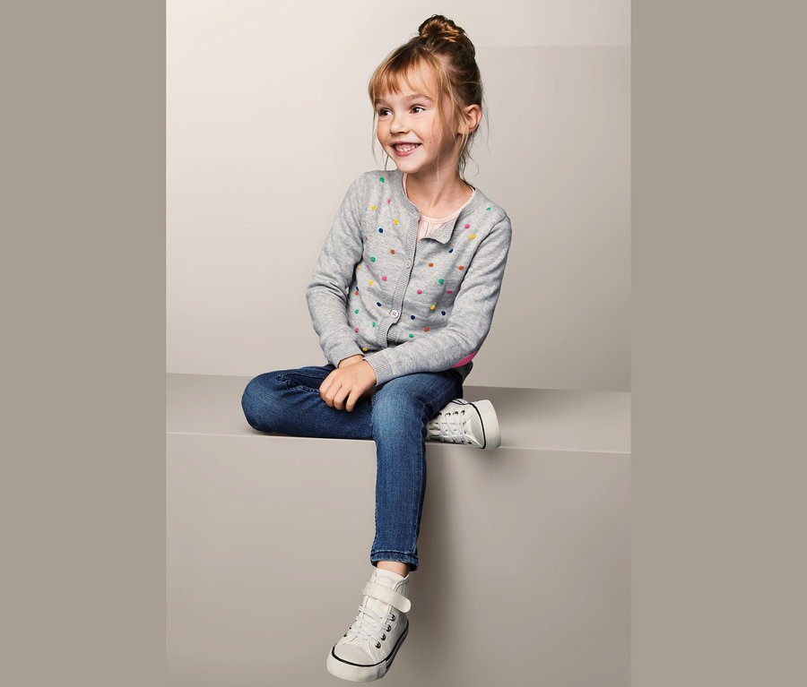 - Punkt-Einstrick am Ellenbogen sorgt fĂĽr einen niedlichen Akzent
