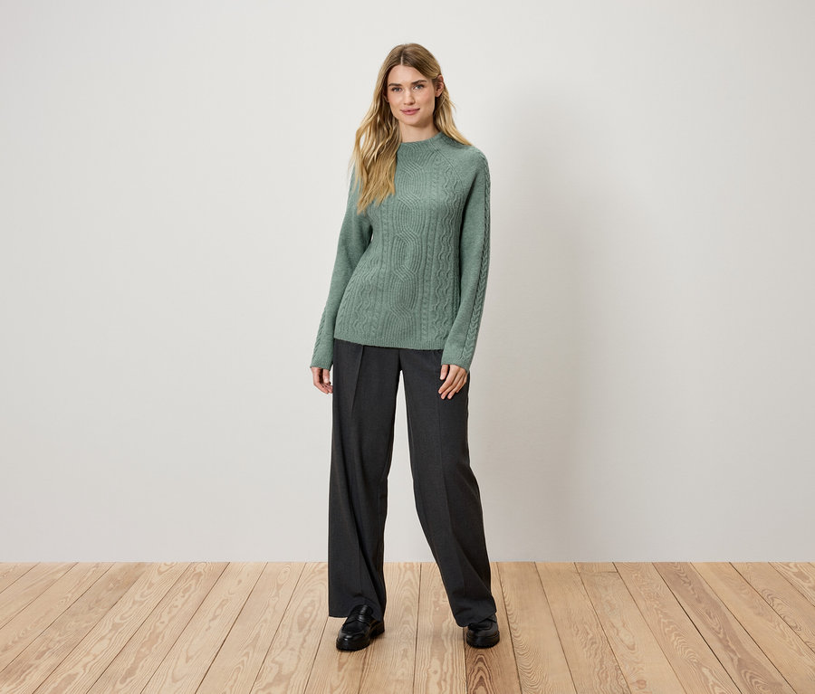 - Zopfstrickmuster auf Vorderseite und Ärmeln