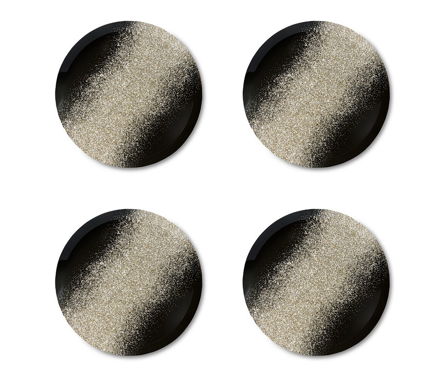 Wenn man verhindern möchte, dass unschöne Glasränder und Wasserflecken auf dem Tisch erscheinen, dann sind diese vier Glasuntersetzer eine wunderbare Möglichkeit. Gefertigt aus dunklem Filz – zum Schutz von empfindlichen Oberflächen – und aus Glas mit goldfarbenem Glanzdekor, verzieren sie zudem jede Tafel. Die dekorativen und kreisrunden Untersetzer haben übrigens einen Durchmesser von je zehn Zentimetern.