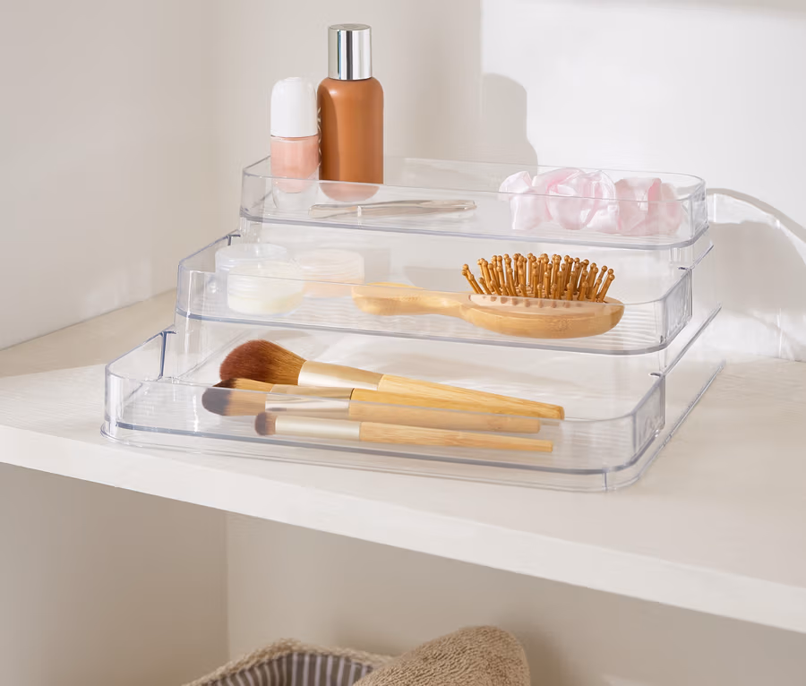 • 3 Fächer sind gestuft angeordnet, ordentlich und gut sichbares Aufbewahren