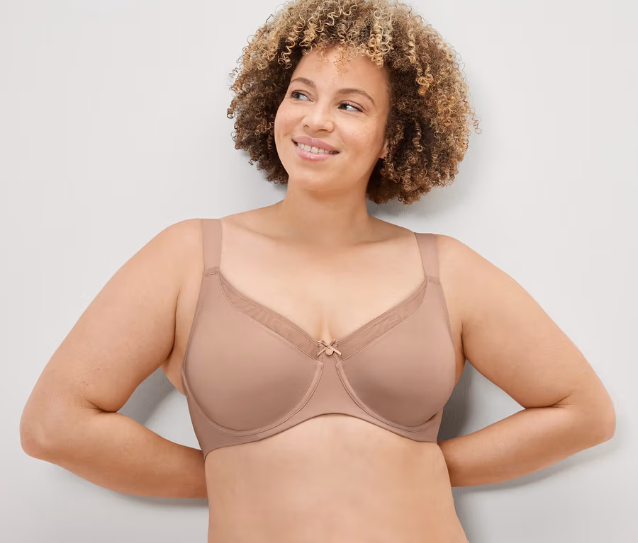 - Spezielle Schnittführung – verkleinert den Busen optisch um 1 Cupgrösse