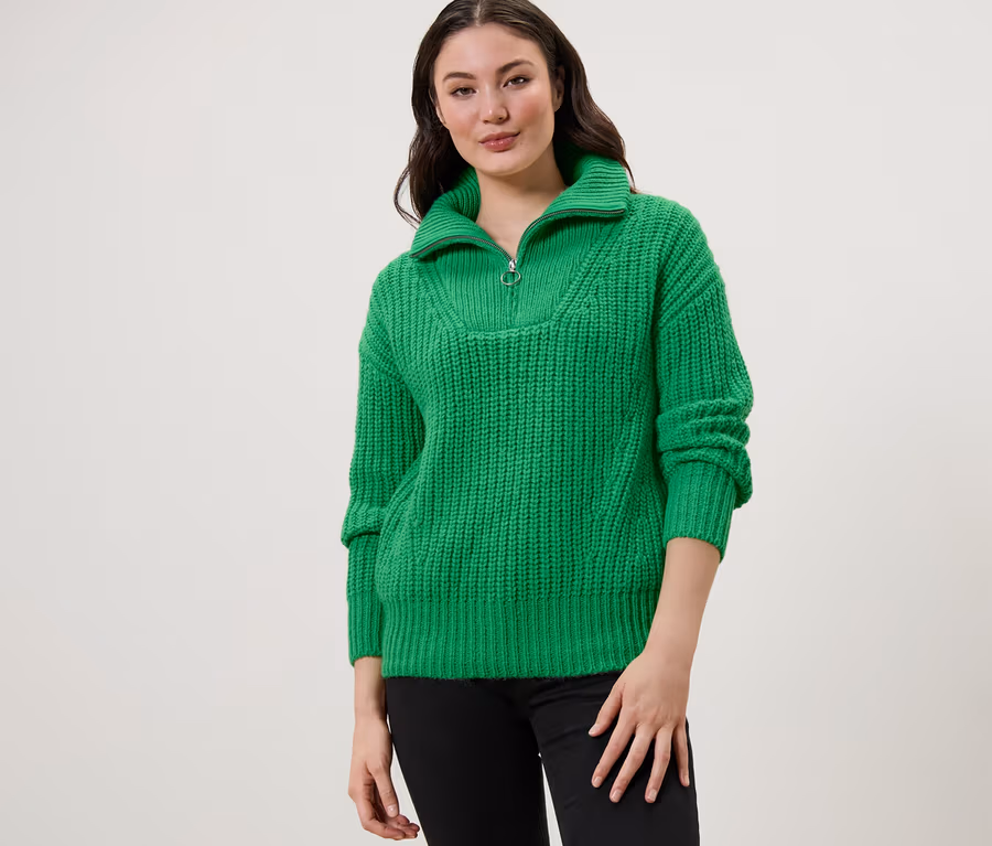 • Rippbündchen an Kragen, Ärmelabschluss und Saum