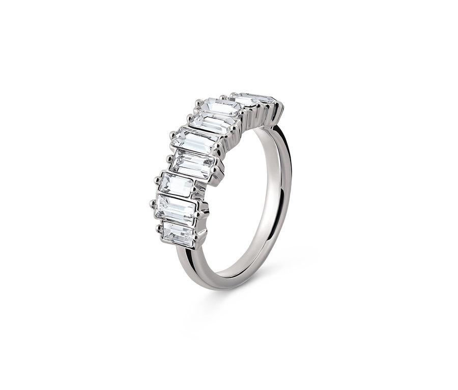 Ring, rhodiniert, mit Glaskristallen