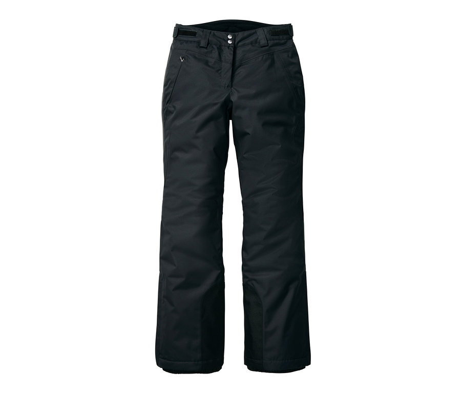 Die Hose hat einen verdeckten Reissverschluss und eine seitliche Reissverschluss-Eingrifftasche. Die höher geschnittene Nierenpartie ist mit angenehm wärmendem Fleecefutter ausstaffiert, der Bund kann mit einem Klettverschluss in der Weite reguliert werden. Durch die vorgeformte Kniepartie lässt sich das Bein leichter beugen und die Beininnenseiten sind mit einer strapazierfähigen Verstärkung versehen. Am Beinabschluss hat die Skihose verdeckte Reissverschlüsse zum leichten An- und Ausziehen sowie einen wasserdichten Schneefang mit rutschhemmender Gummierung.