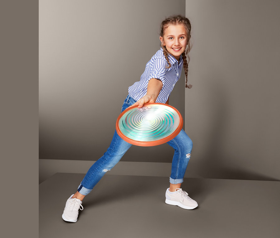 - Wurfscheibe mit 2 starken LED-Leuchten von der Mitte nach aussen