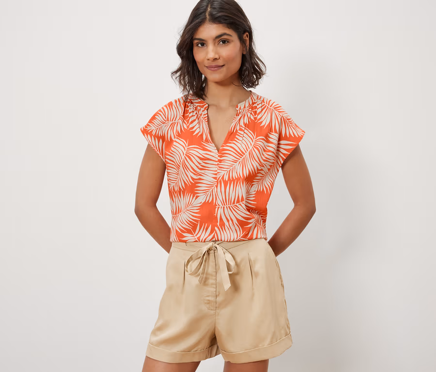 - Orange mit cremeweissem Palmenblätter-Print