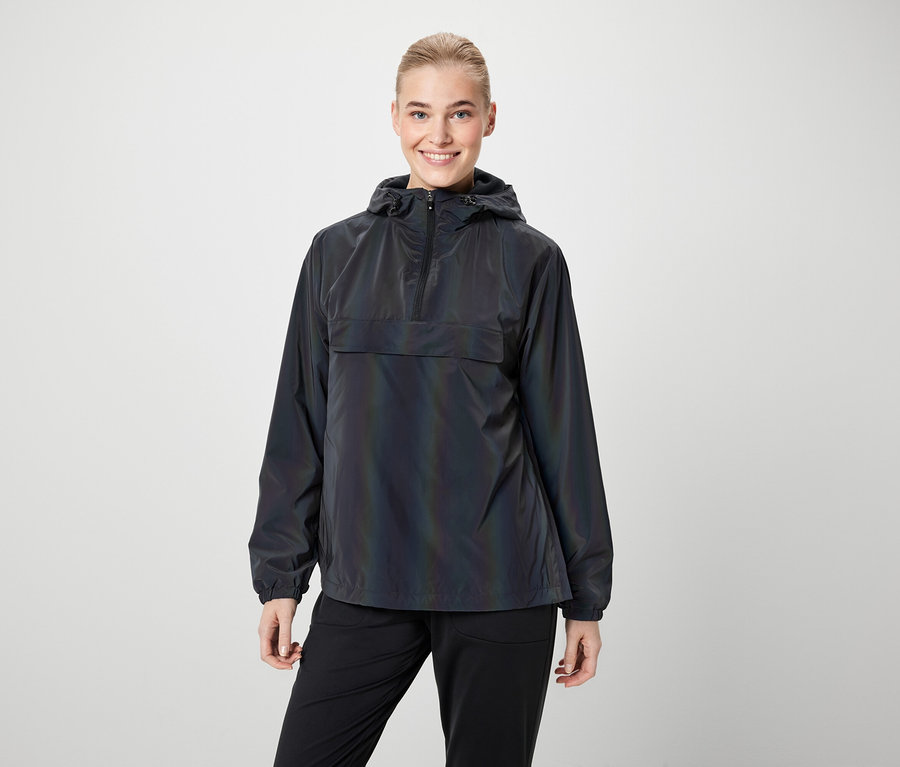 - Verstellbare Kapuze mit hochschliessendem Stehkragen