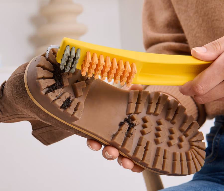 - Metallhaken zum Entfernen von grobem Schmutz und Steinen von den Schuhsohlen