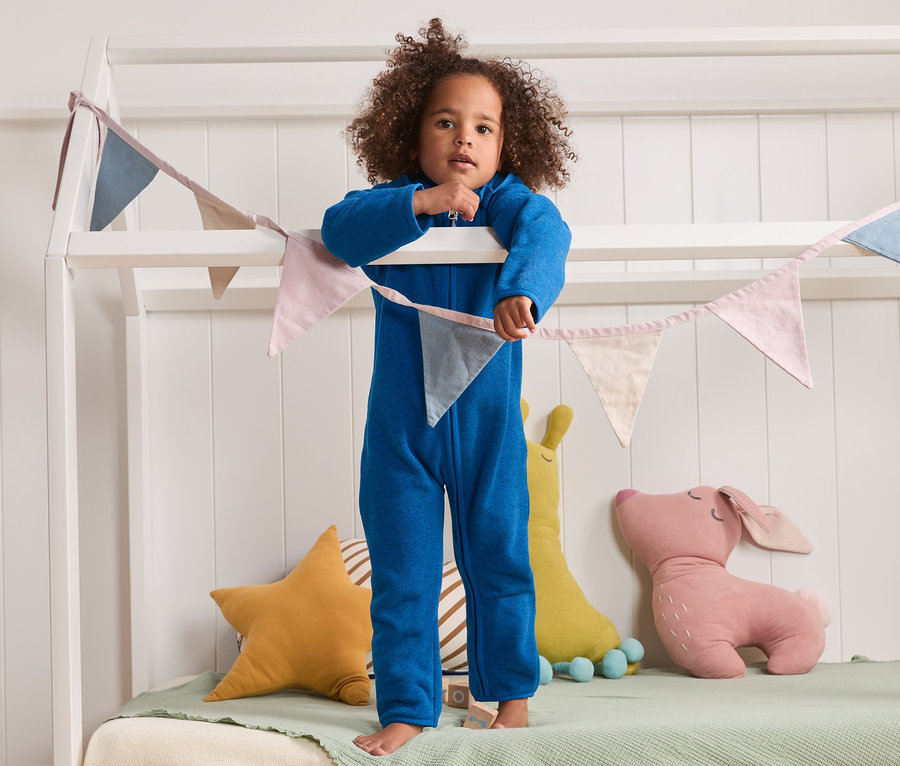 Strickfleece-Einteiler mit Kapuze mit recyceltem Material