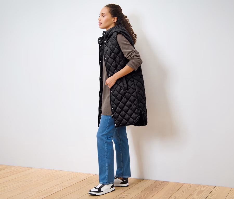 - Leicht abgerundeter Saum mit Seitenschlitzen