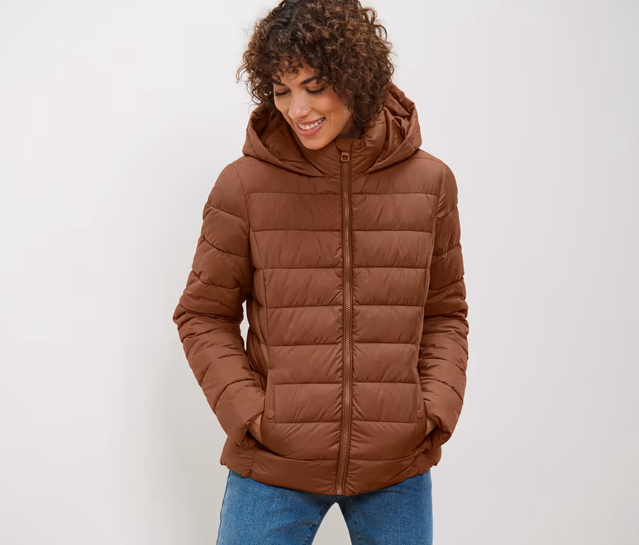 Steppjacke mit Kapuze, cognac