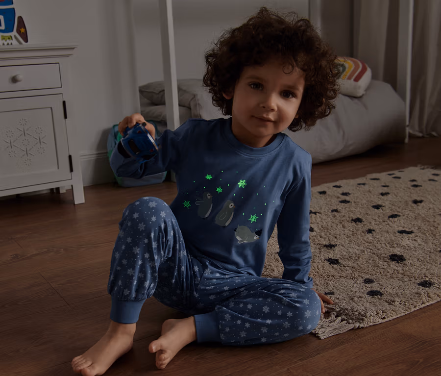 Kinder-Glow-in-the-dark-Pyjama mit Pinguinprint