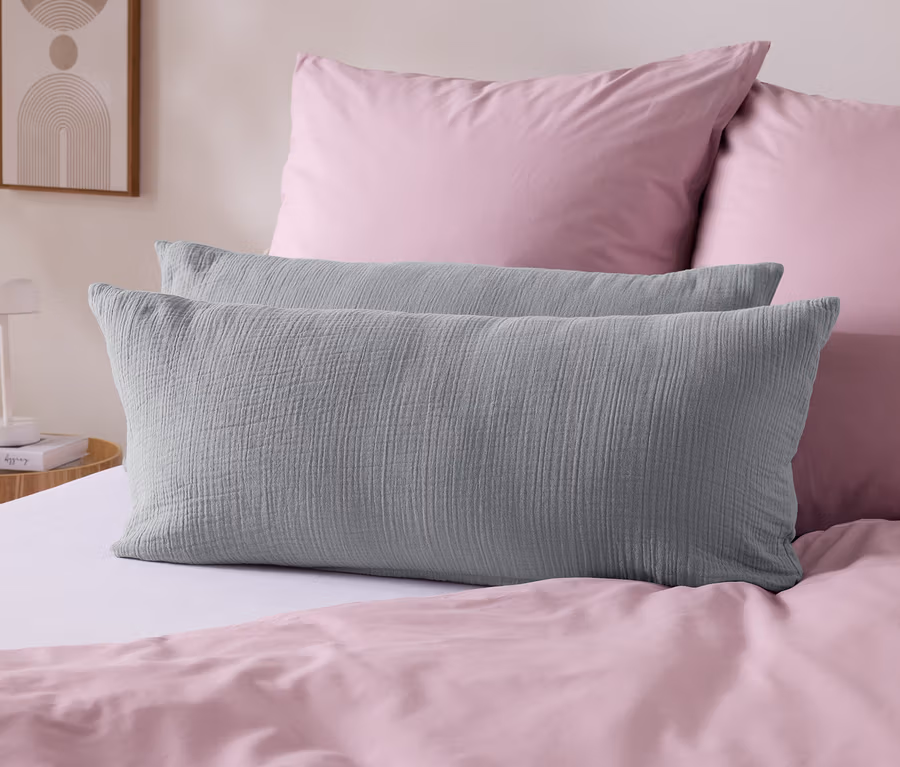 2 Musselin-Kopfkissenbezüge, grau, ca. 80 x 40 cm