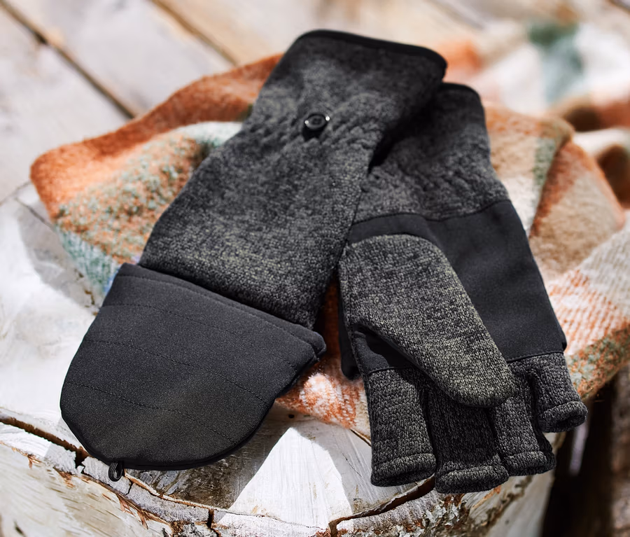 • Diese Strickfleece-Klappfäustlinge beinhalten Plastikabfälle.