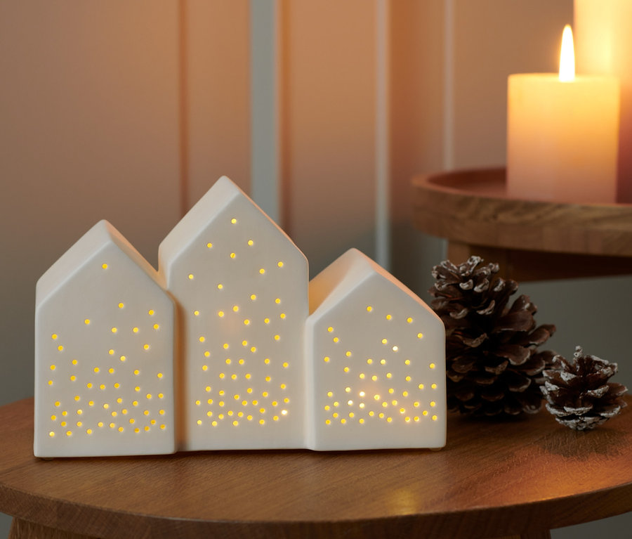 Häuschen Höhe 1x ca. 9 cm, 1x ca. 11 cm, 1x ca. 13 cm, Tiefe je ca. 8 cm