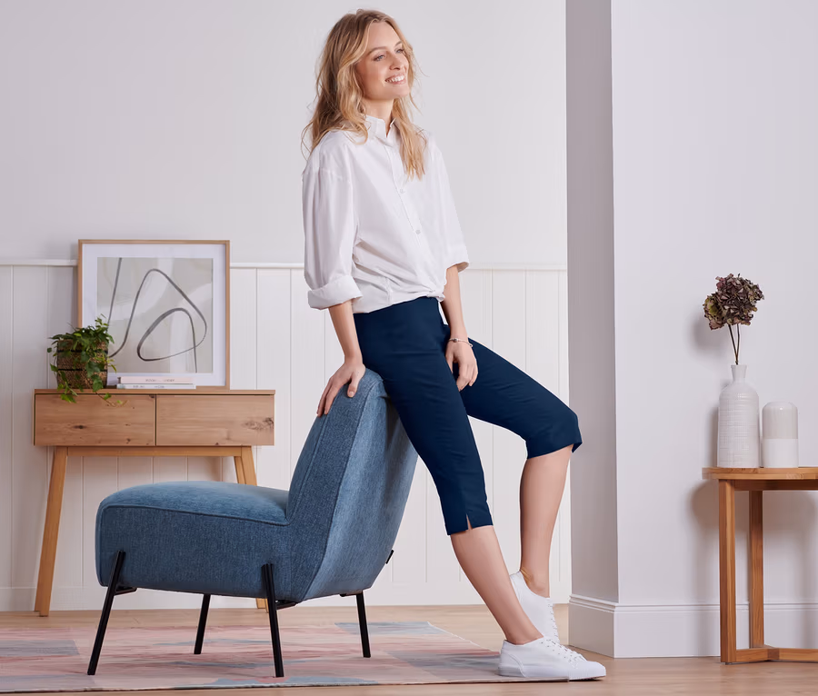 Bengalin-Hose in 3/4-Länge, navy