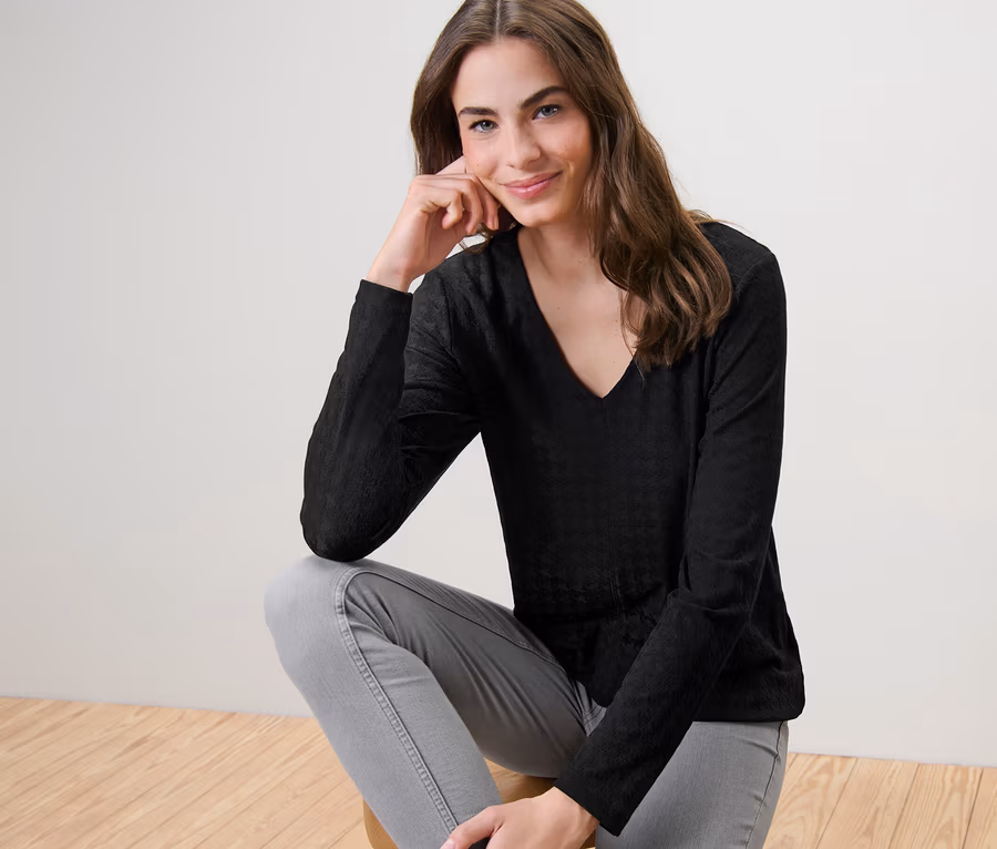Strukturiertes Langarmshirt, schwarz