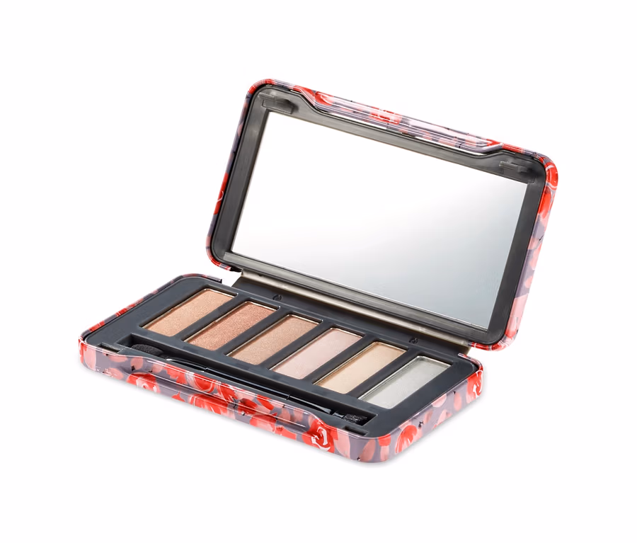Den perfekten Make-up-Ton immer zur Hand: In dieser Lidschatten-Palette finden sich sechs dezente Nude-Töne mit zartem, seidigem Schimmer, mit denen man für jeden Style die passende Nuance hat. Sie sind für jeden Hauttypen geeignet und lassen sich mit dem doppelseitigen Lidschatten-Applikator auftragen. Die Dose aus Metall hat aussen einen hübschen floralen Print und innen einen Spiegel, der beim Schminken unterwegs hilft.