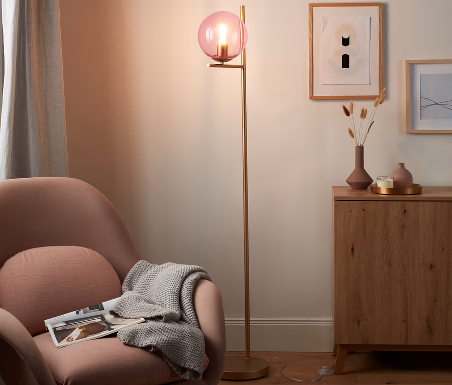 - Lampe mit roséfarbener Glaskugel