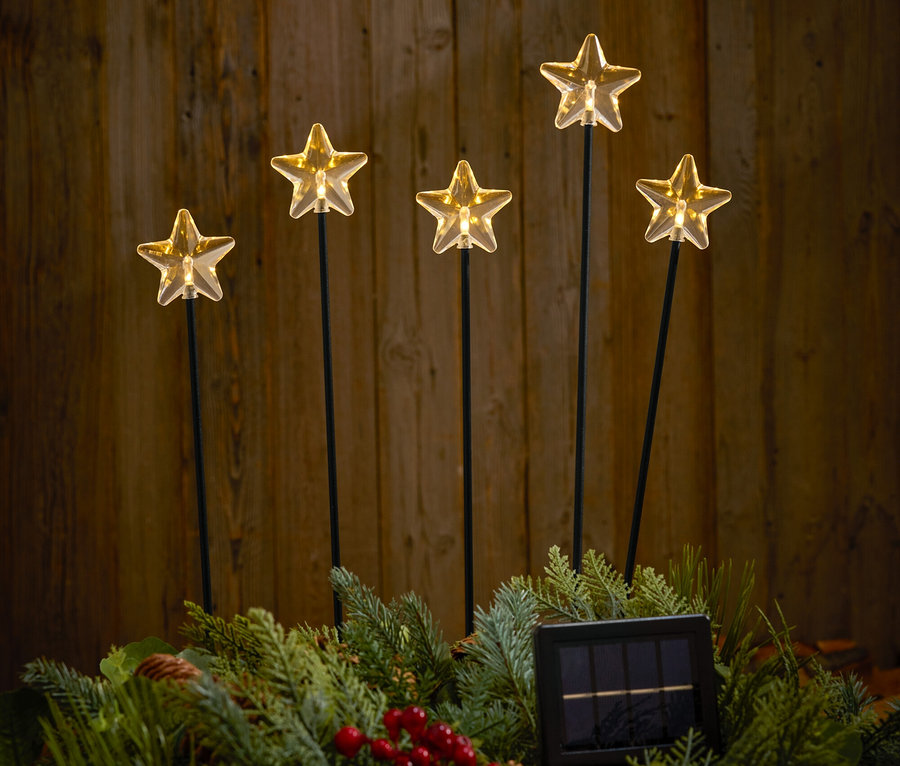 5 Solar-Leuchtspiesse »Sterne«