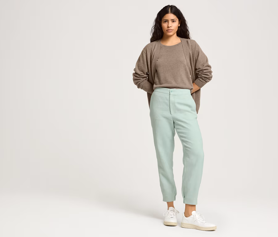 38% Baumwolle (recycelt), 37% Leinen, 25% Baumwolle (aus ökologischem Anbau)