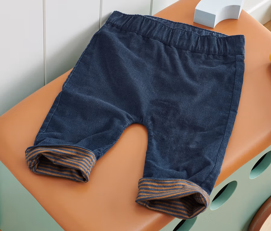 - 1 Seite aus weichem Cord, 1 Seite aus Single-Jersey