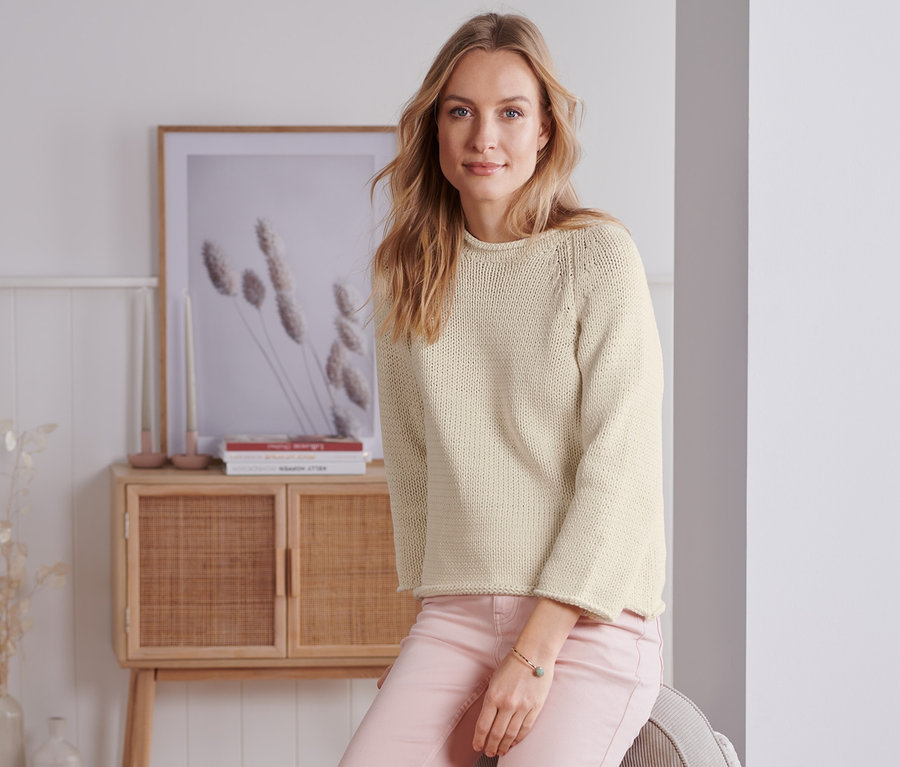 Grobstrick-Pullover aus Bändchengarn, cremefarben