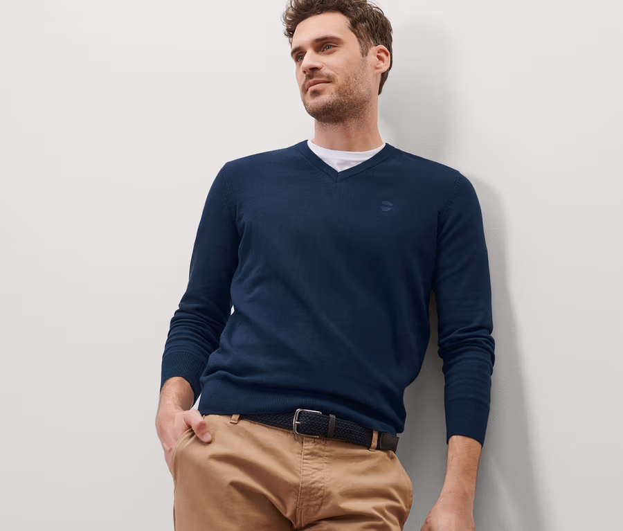 - Rippstrickbündchen an Ausschnitt, Ärmeln und Saum
