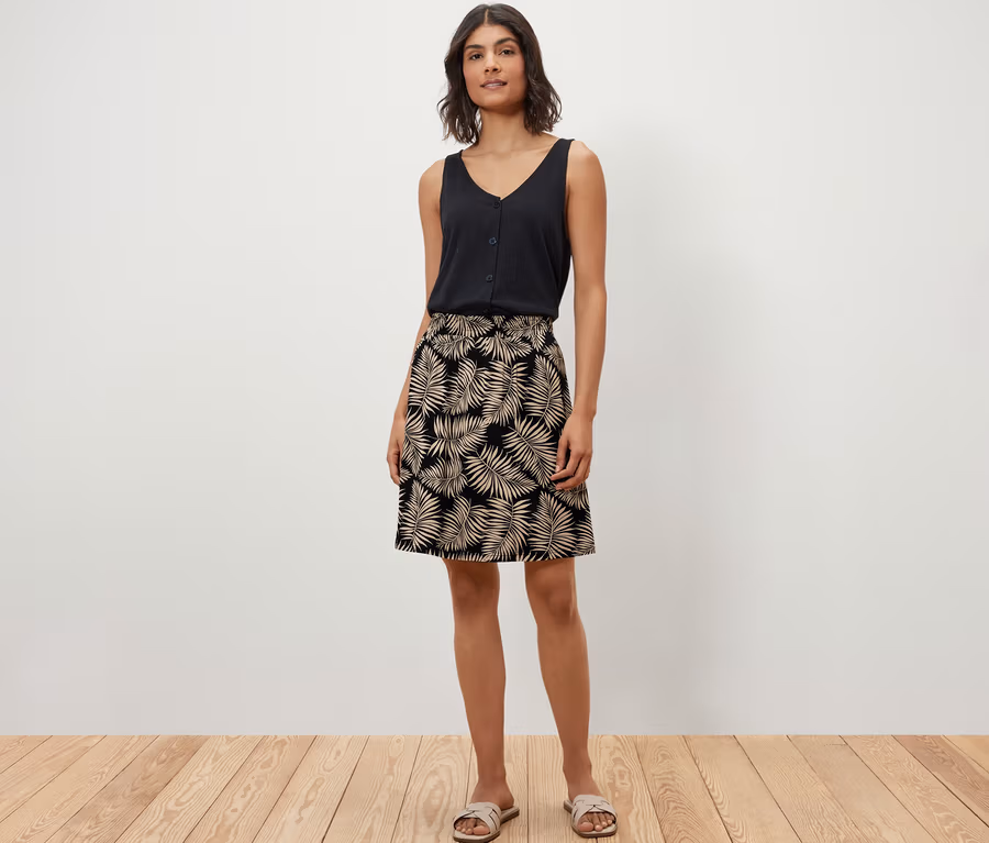 - Schwarz mit beigefarbenem Palmenblätter-Print