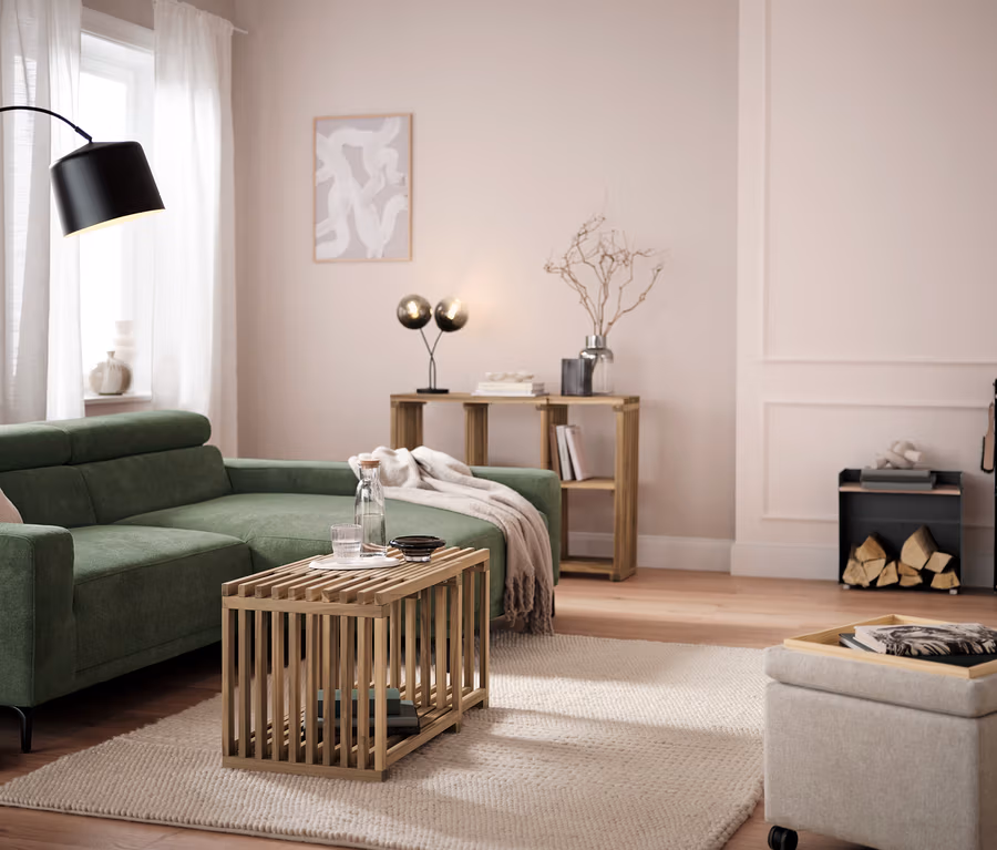 - Couchtisch aus dekorativen Holzlamellen im skandinavischen Design