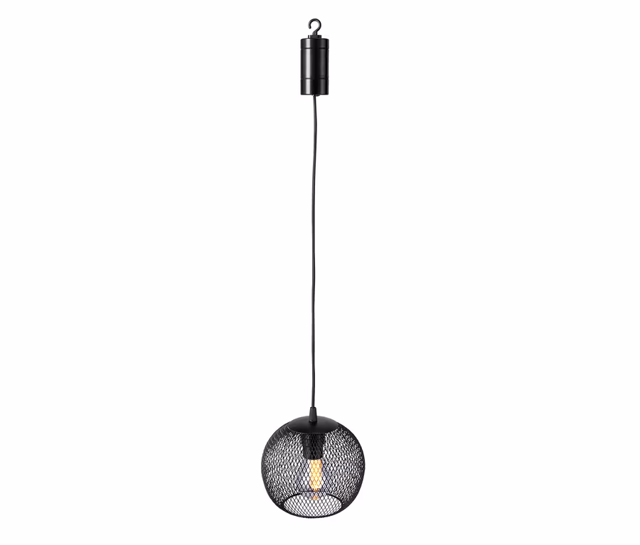 Mit der hier muss noch lange nicht Schluss sein, wenn die Sonne untergegangen ist: Diese LED-Outdoor-Pendelleuchte verbreitet angenehmes Licht und sorgt im Garten oder auf dem Balkon fĂŒr eine einladende Stimmung. Die Leuchte mit einem Lampenschirm in Gitteroptik verleiht mit ihrem integrierten Filamentleuchtmittel-Imitat jedem Aussenbereich einen stimmungsvollen Akzent.