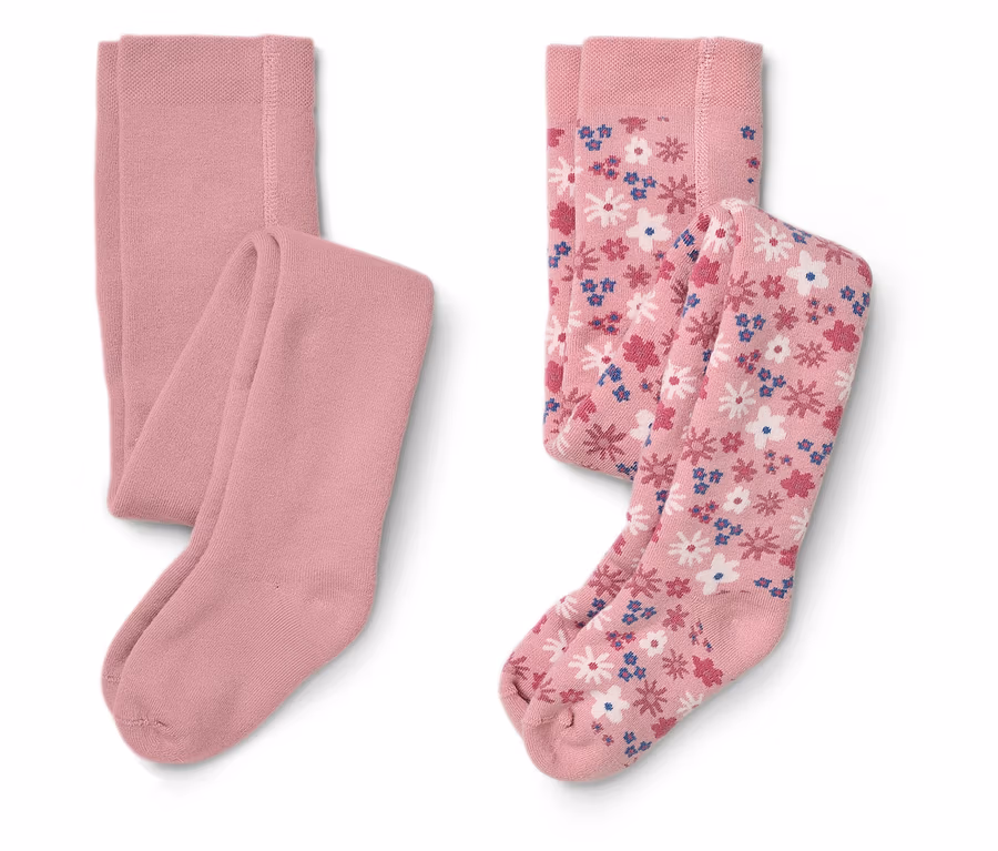 2 Paar Kinder-Frottee-Thermostrumpfhosen, geblümt