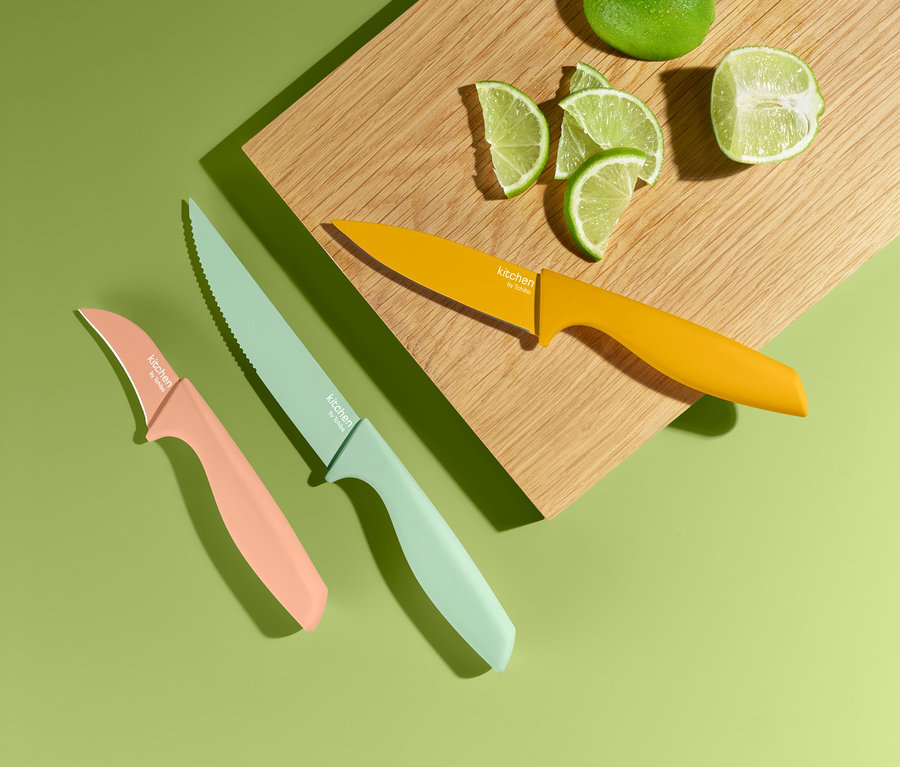 - Für jeden Zweck das richtige Messer: 1 Schälmesser, 1 Obst- und Gemüsemesser und 1 Allzweckmesser