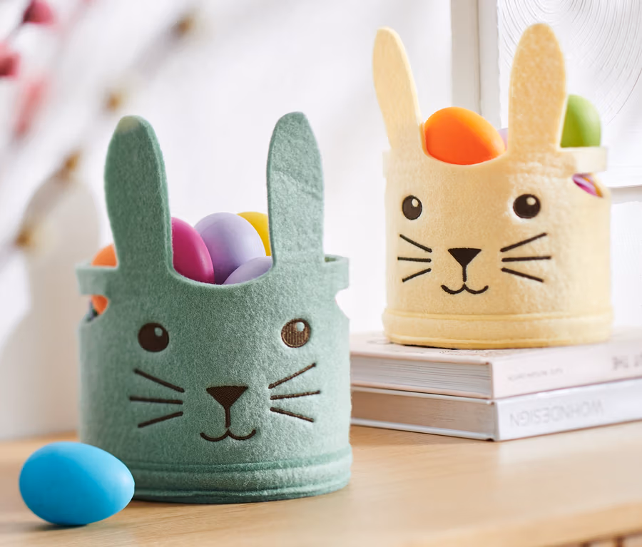 - Mit Hasenohren, Hasengesicht, Pompom-Schwänzchen und Tragegriffen