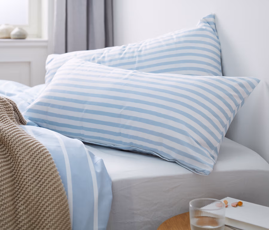 2 Renforcé-Kopfkissenbezüge, blau-weiss gestreift