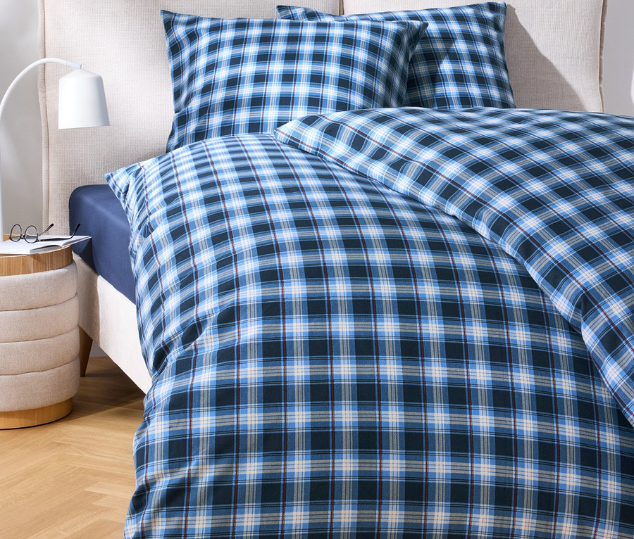 Biber-Bettwäsche, blau kariert, Normalgrösse