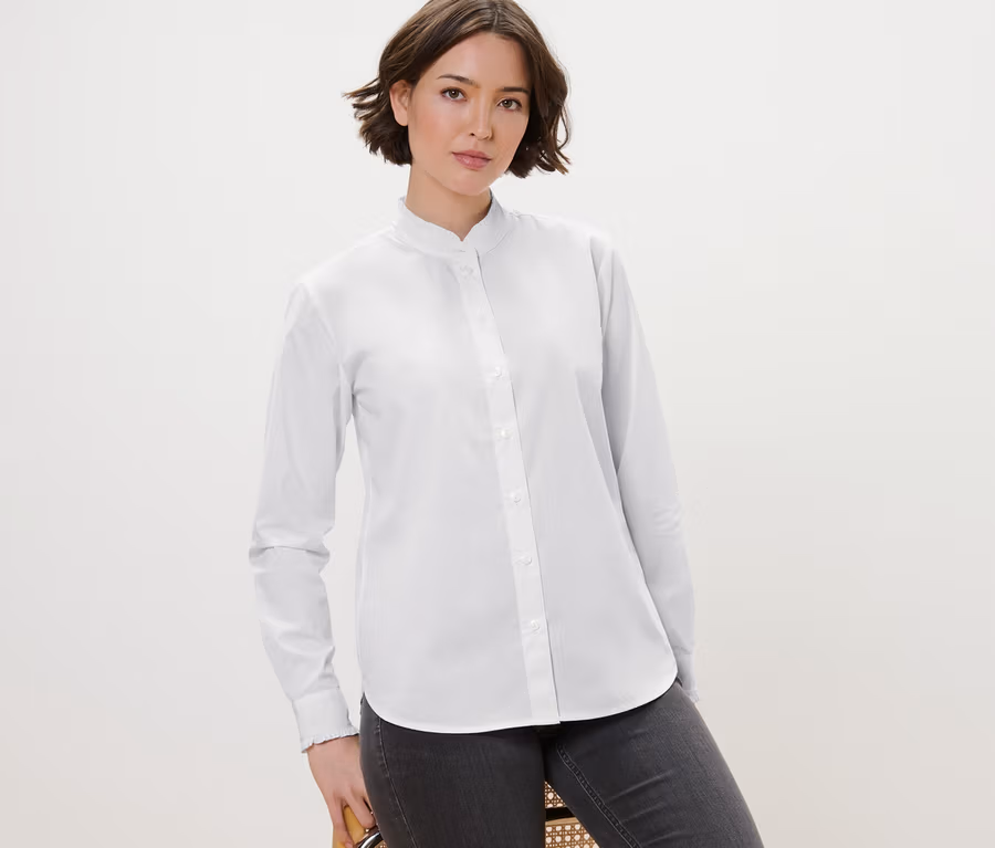 - Ärmelabschluss mit geknöpfter Manschette und Rüschenkante