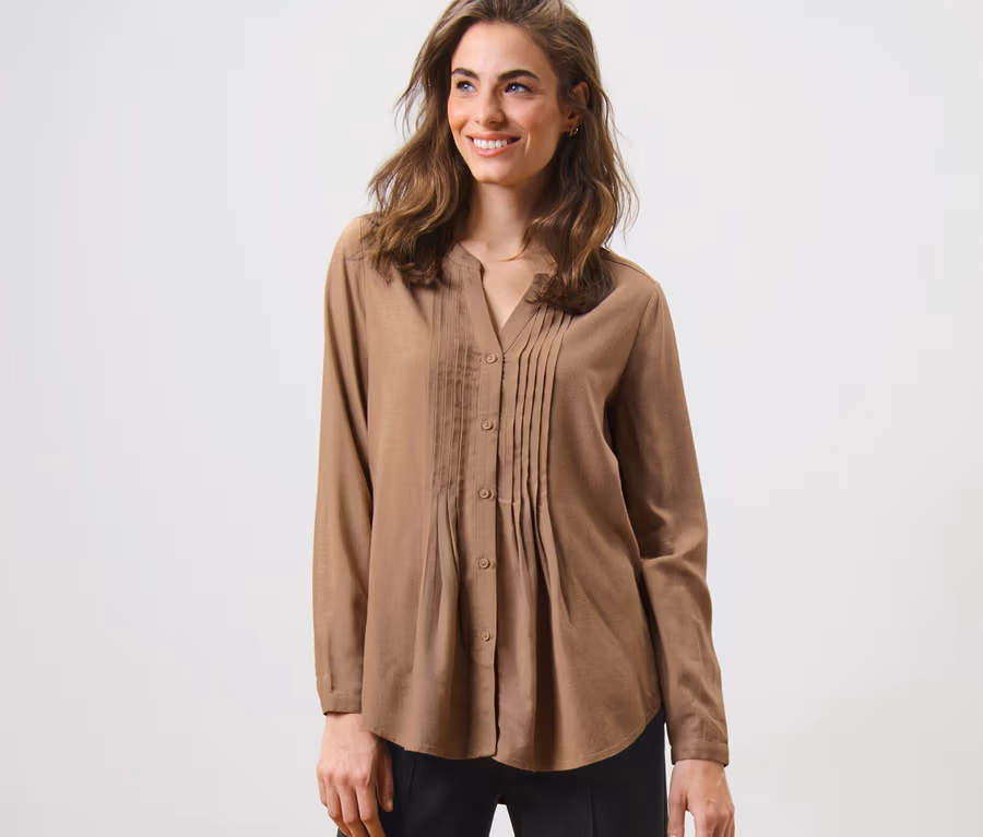 - Diese Bluse beinhaltet Fasern aus nachhaltigem Holz.