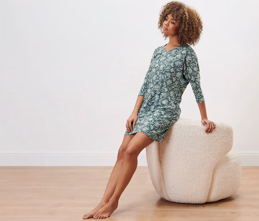 Nachthemd, petrol mit Alloverprint