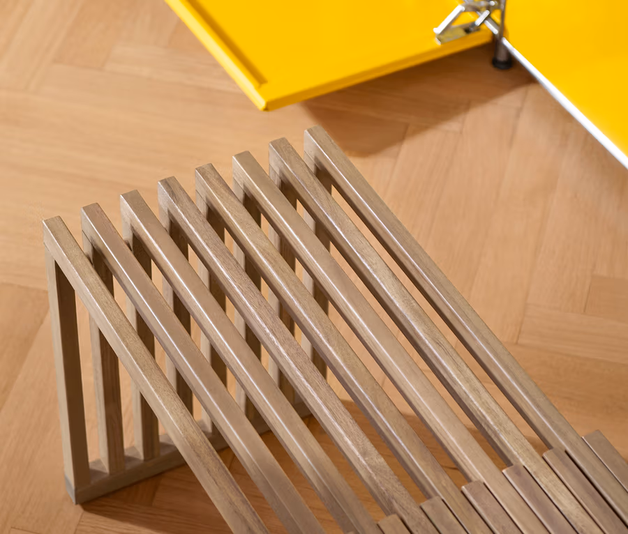 • Bank in Lamellenoptik, bis auf ca. 136 cm ausziehbar