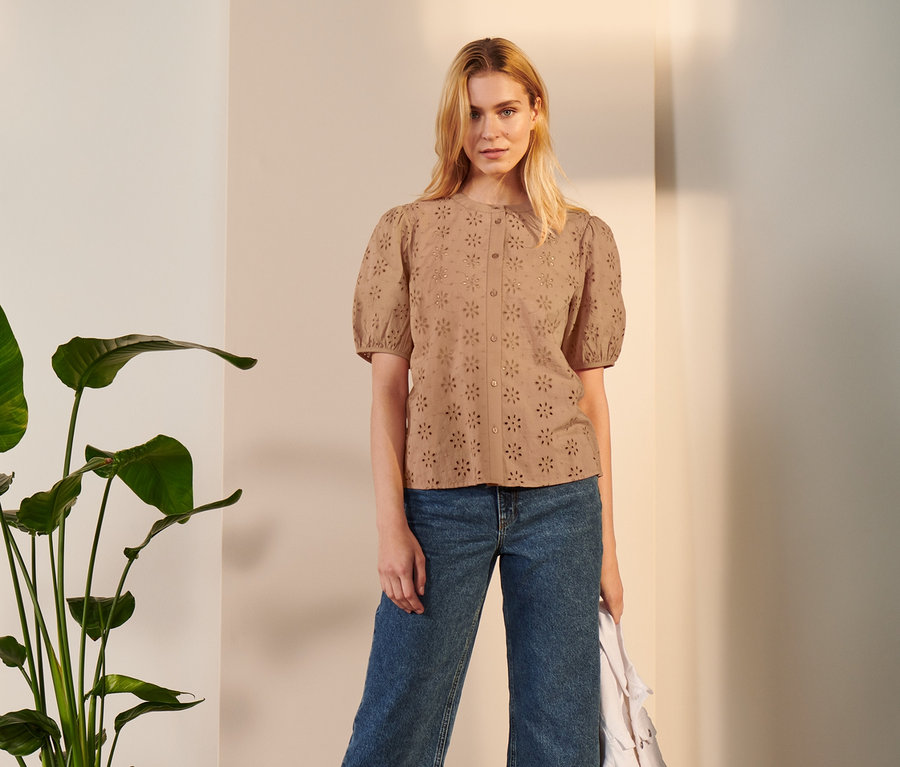 - Tipp: mit einem Top darunter kombinieren – Bluse hat kein Innenfutter