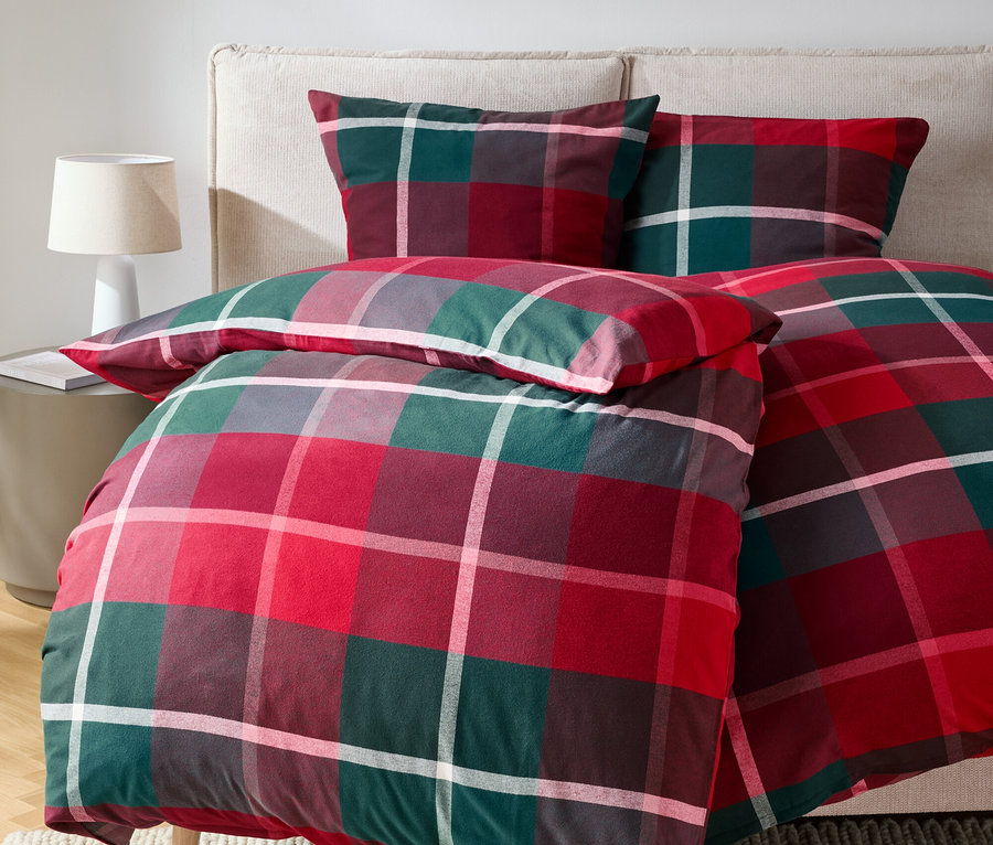 Flanell-Bettwäsche, mehrfarbig kariert, Normalgrösse