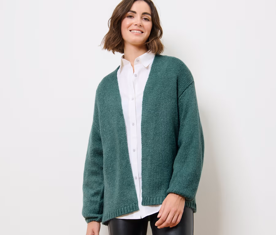 - Strickjacke mit überschnittenen Schultern