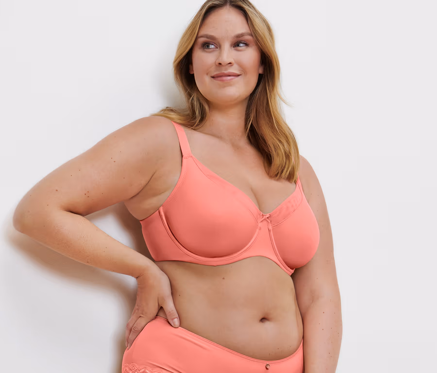 - Spezieller Schnitt – verkleinert den Busen optisch um 1 Cupgrösse