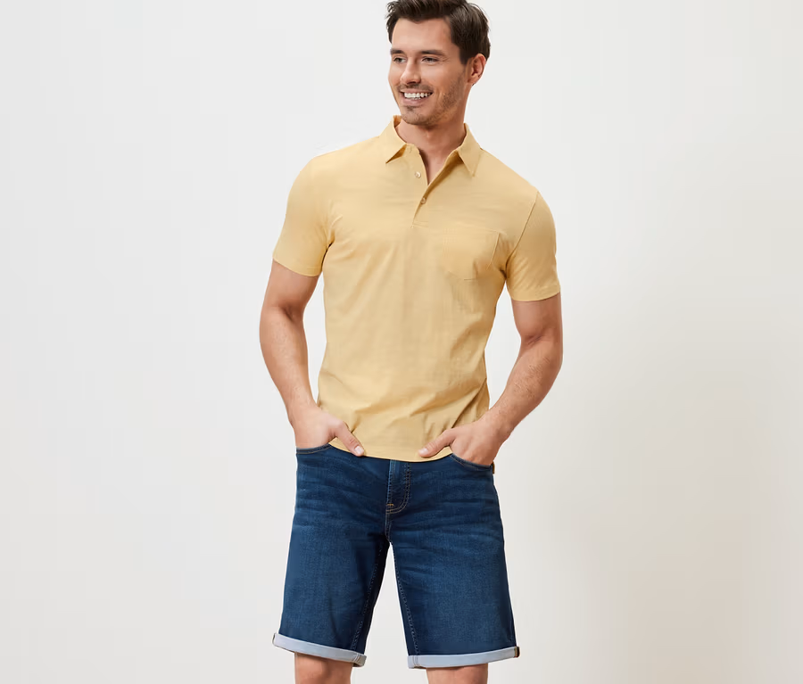 Jersey-Poloshirt, gelb meliert