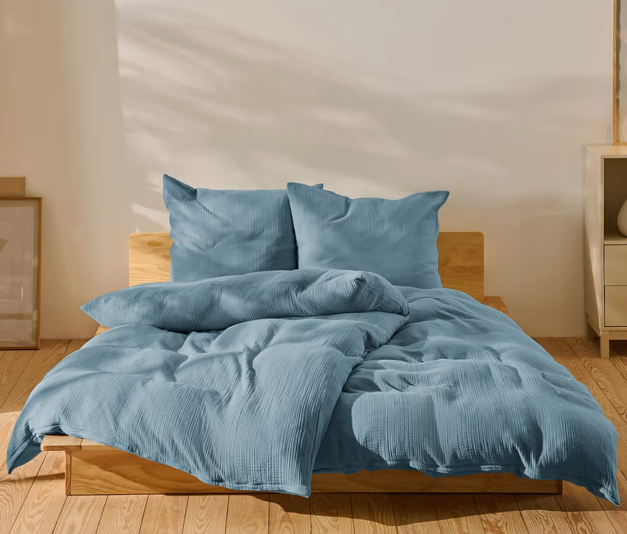 Musselin-Bettwäsche, blau, Normalgrösse